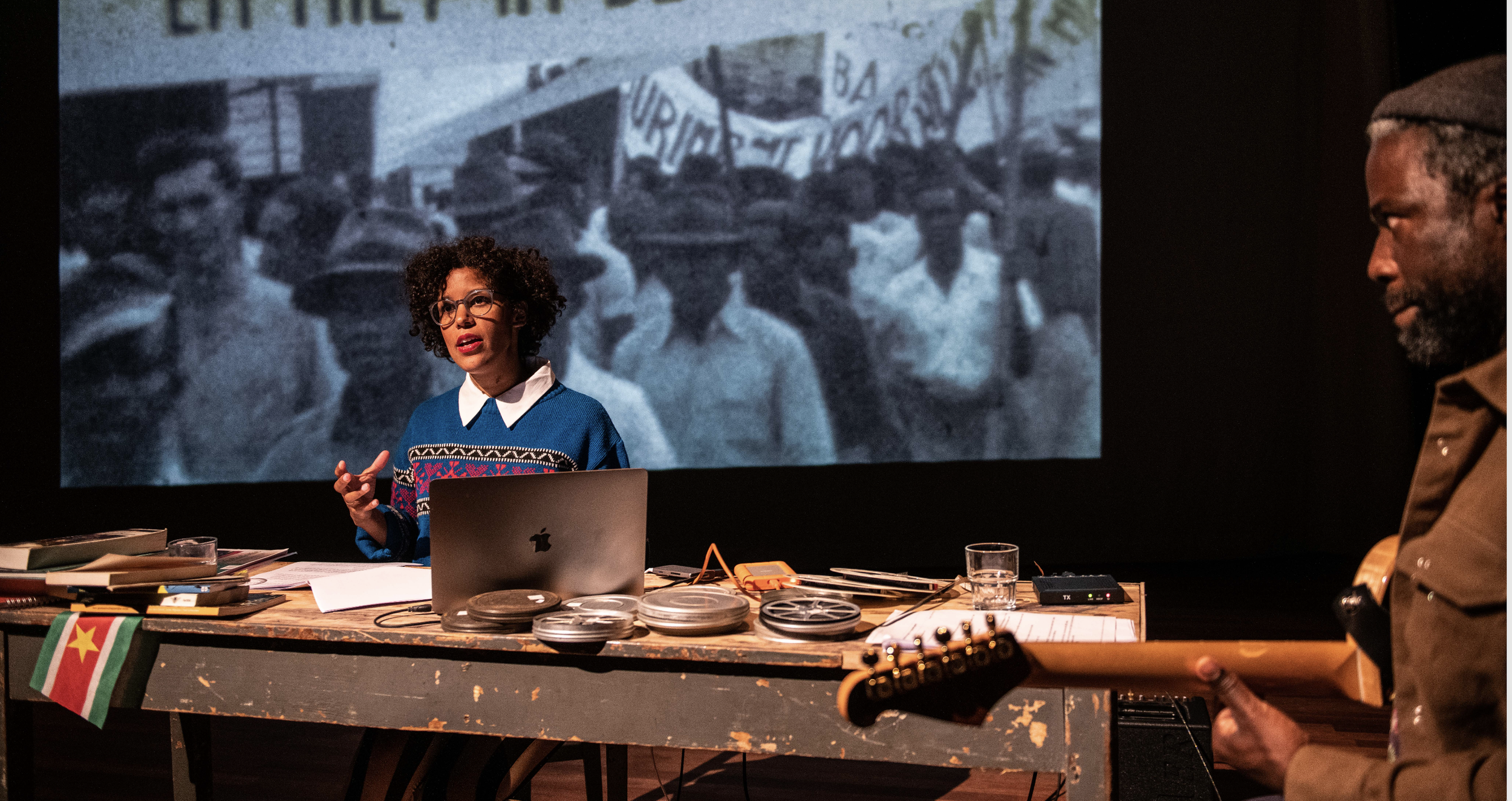 Een theatrale versie van de documentaire mijn land, mi gron met live storytelling en muziek.